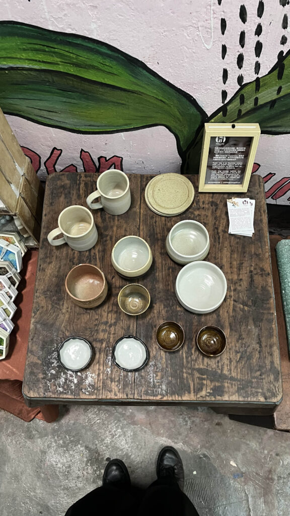 地元の陶芸作家さんの作品をじっくり観察して、形や色のバランスをチェック。